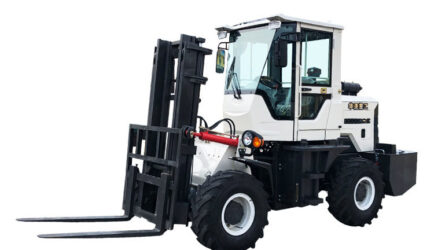 The off-road forklift has sturdy tires, powerful engine, flexible work, large traction, safe and stable, small turning radius, suitable for work in rough terrain.